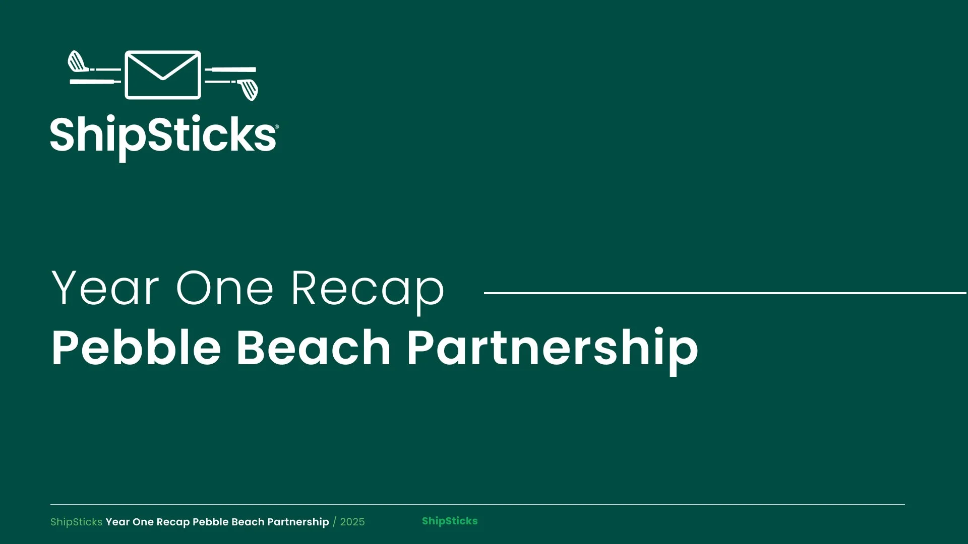 A sleek recap presentation that blends strong visuals, clear data, and minimal layouts to celebrate the first year of the ShipSticks and Pebble Beach partnership. The design highlights key wins, guest engagement, and the continued growth of the collaboration.